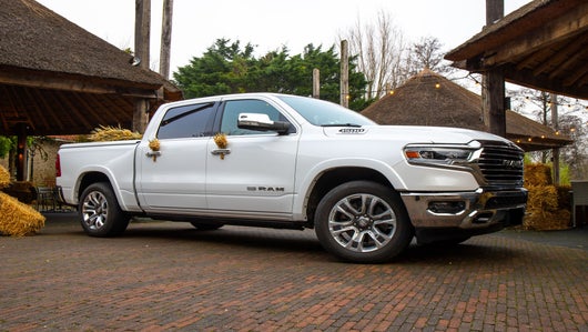 De Dodge Ram 1500 Longhorn trouwauto huren inclusief chauffeur kan vanaf 2 uur voor €289,-. Per gehuurd uur krijg je 25 vrije kilometers om jullie te laten rondrijden. Voor extra afgelegde kilometers wordt er €1,- per kilometer in rekening gebracht.
